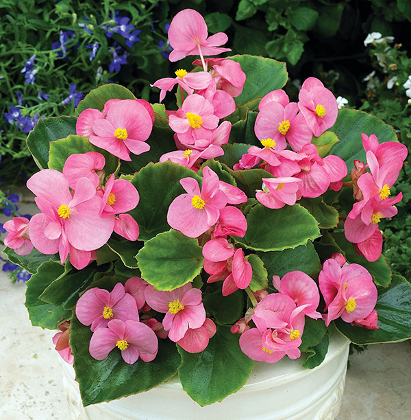 Бегония вечноцветущая Бада бинг пинк (зелёный лист) – Компактное теневыносливое растение с зелёной листвой. Характеризуется быстрым ростом и ранним обильным цветением. Цветки светло-розового цвета. Подходит для массовых посадок, ландшафтного дизайна, в том числе, высадки на затененных участках, выращивания в кашпо и контейнерах.